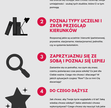 Aby nie odczuwać takiego dyskomfortu podpowiem co można zrobić, by przygotować się do wyboru szkoły ponadpodstawowej / studiów.